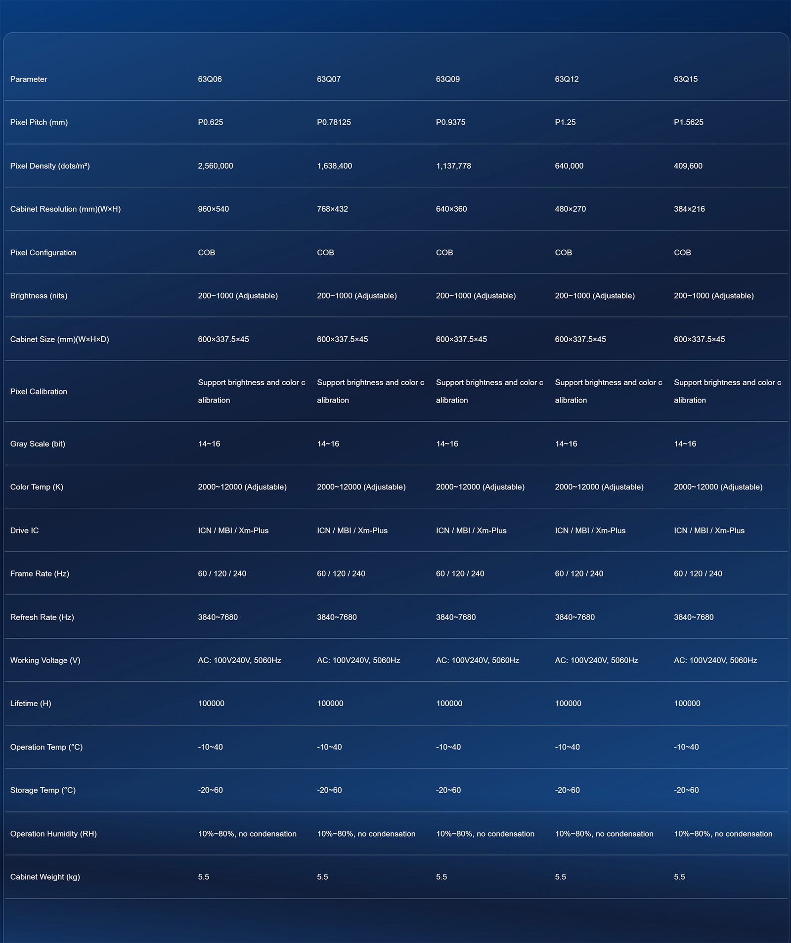 - Pixel pitch(mm): 0.625/0.78/0.93/1.25/1.56